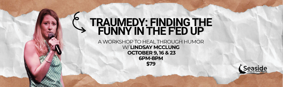 Traumedy: Finding the Funny in the F'ed UpA Workshop to Heal Through HumorAt the intersection of comedy and catharsis lies TRAUMEDY -- a heart-centered, trauma-informed writing workshop that invites you to transform painful life experiences into powerful, funny stories. In a safe, soulful space at Seaside Center for Spiritual Living, we'll explore how humor can heal, reframe, and uplift even the darkest chapters of our past. Through guided writing, creative prompts, group sharing, and laughter, you'll learn how to process personal pain and uncover the divine absurdity of being human. Whether you're a seasoned performer, a secret journaler, or simply someone who's been through some sht* and has a sense of humor about it--this space is for you. We'll hold it sacred. We'll make it hilarious. You'll leave lighter, louder, and more You than ever!